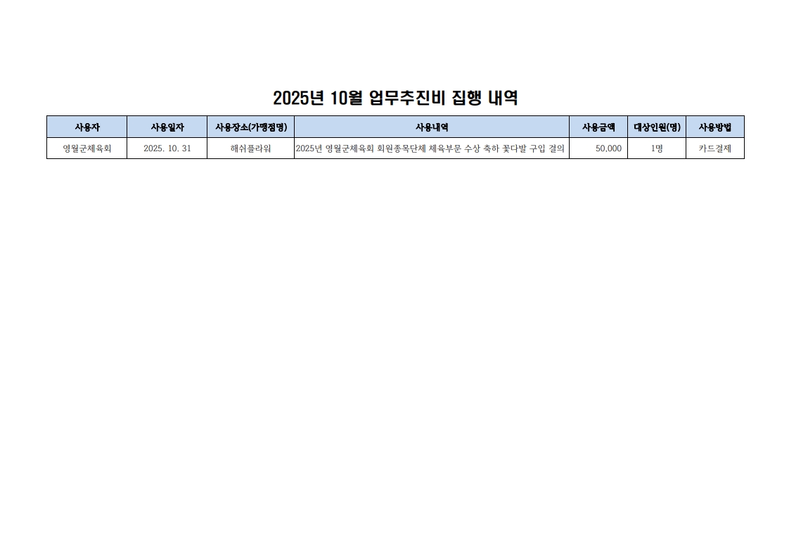 2025년 10월 업무추진비 집행내역