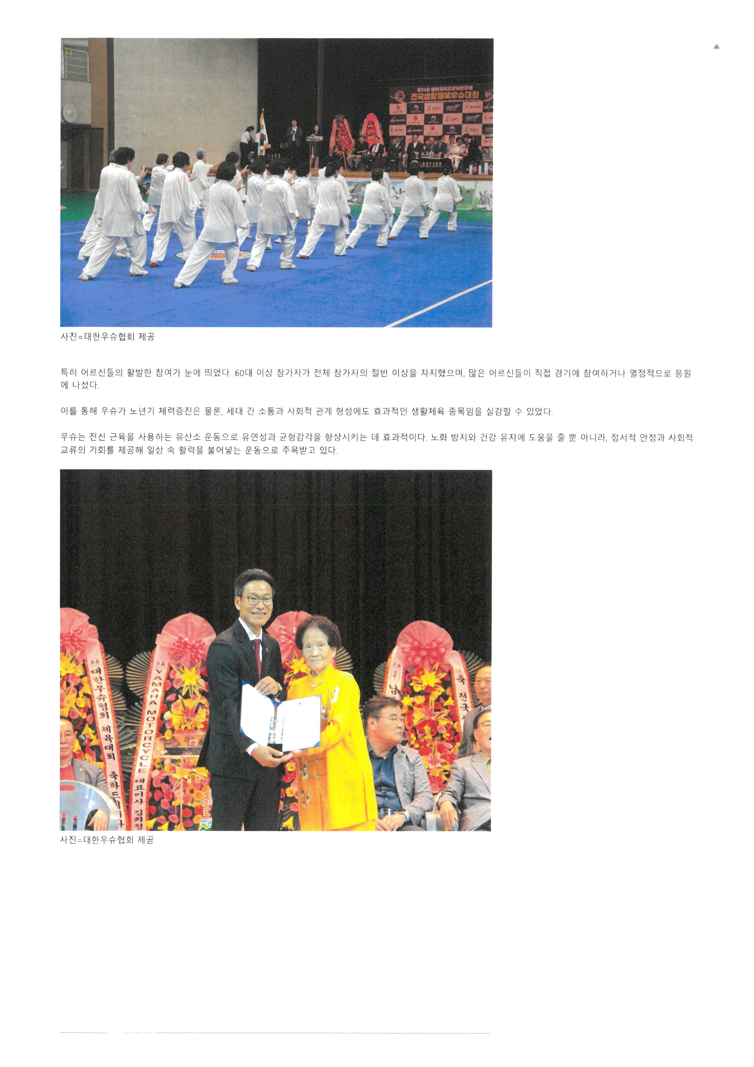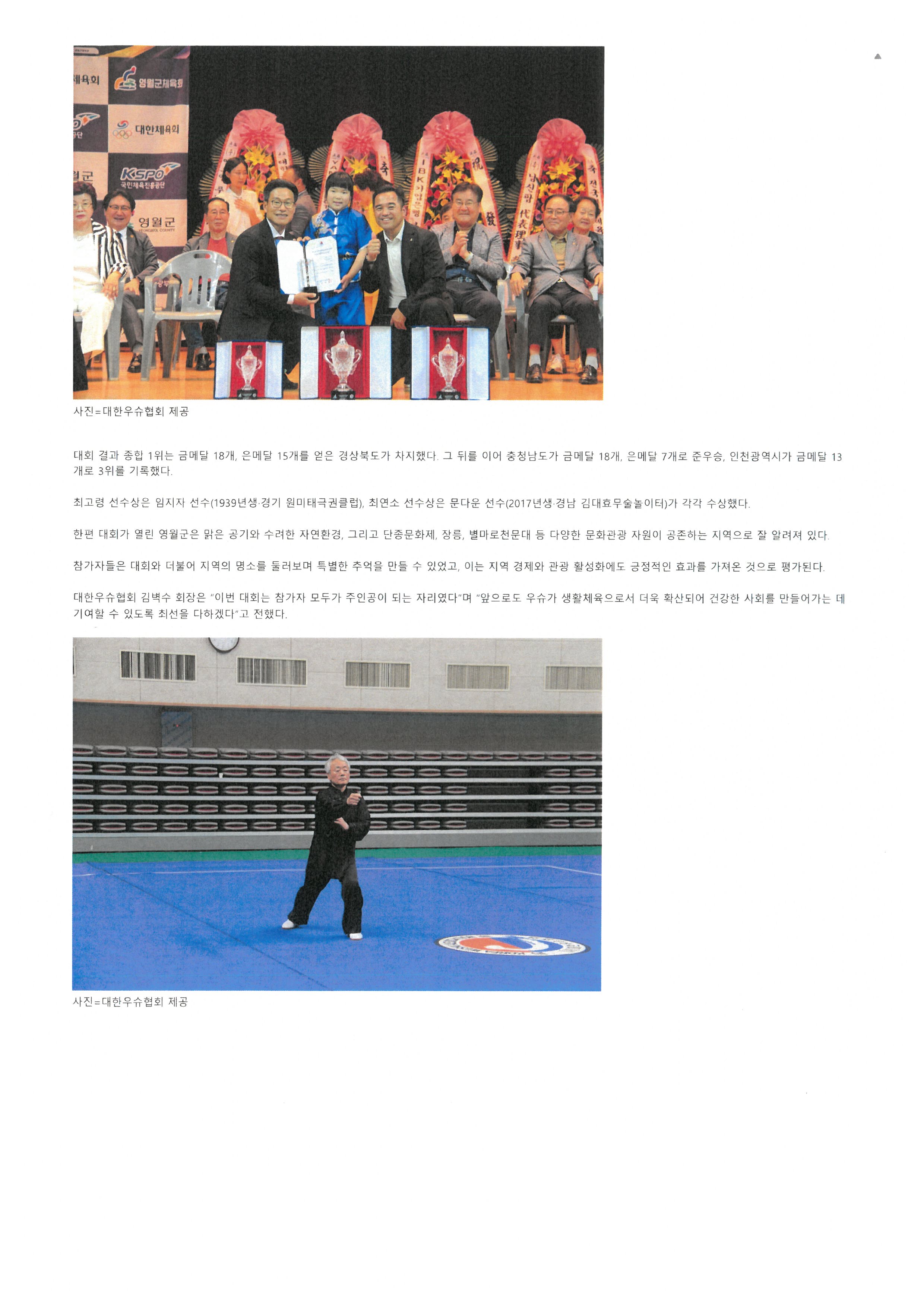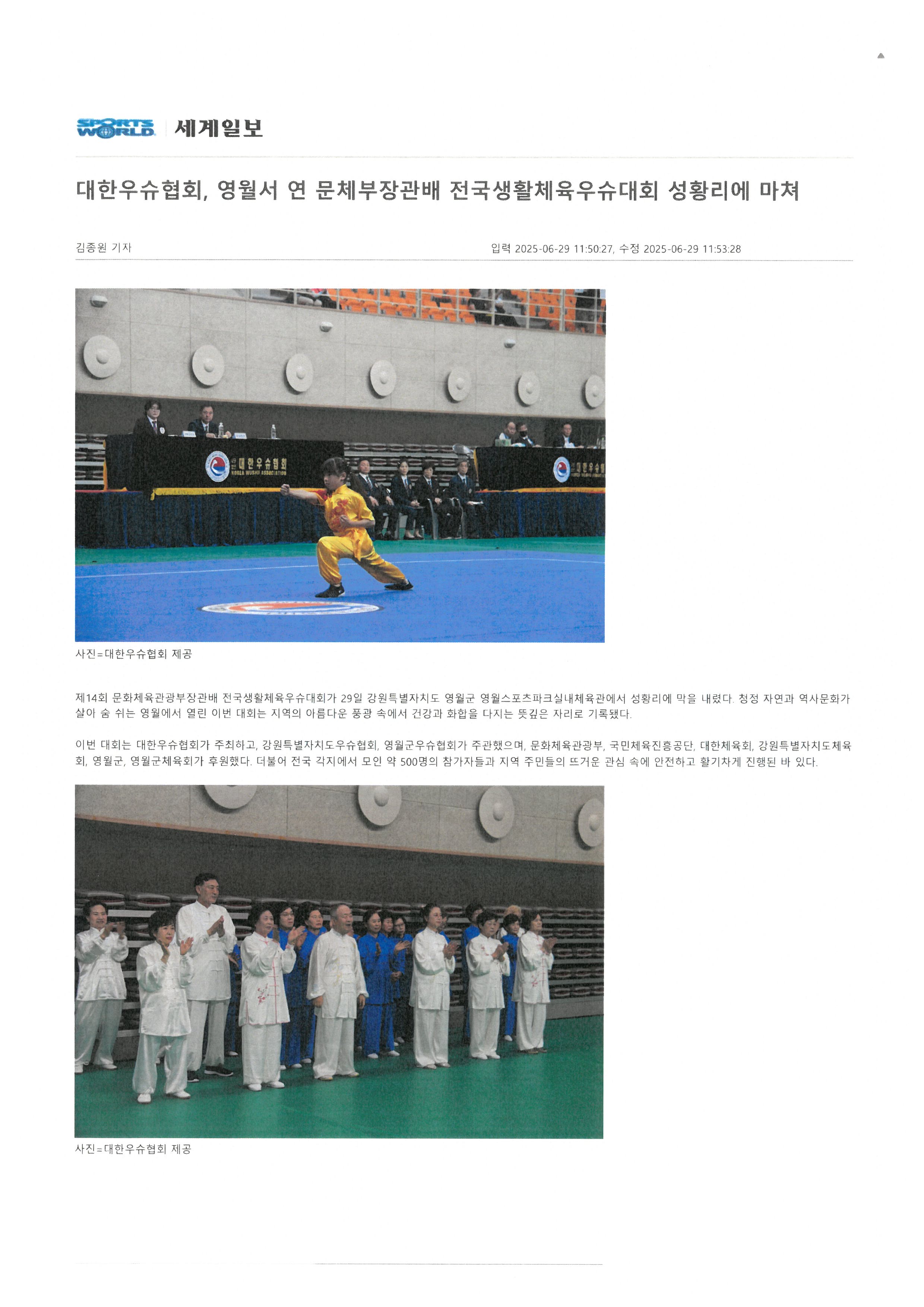 대한우슈협회, 영월서 연 문체부장관배 전국생활체육우슈대회 성황리에 마쳐(2025.6.29.)스포츠월드기사