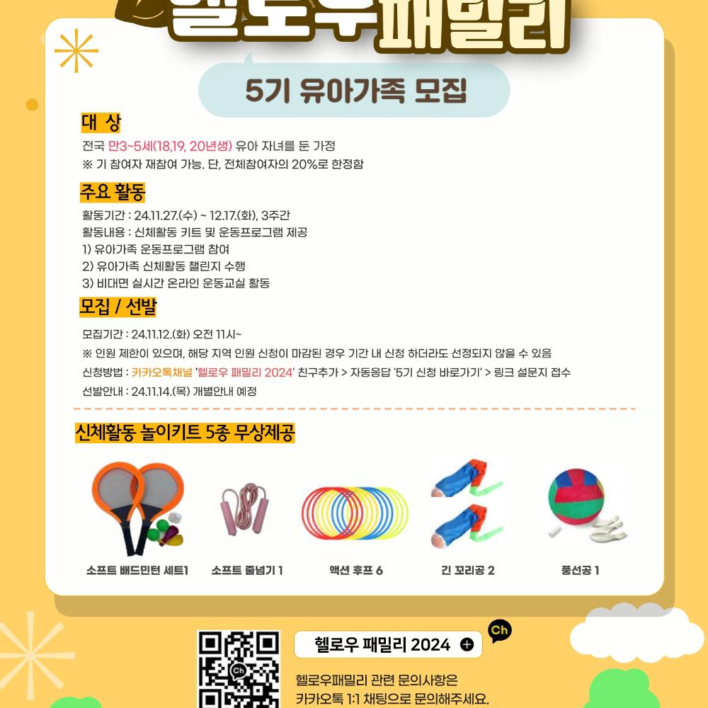 비대면 유아가족 운동프로그램"2024 헬로우패밀리" 홍보협조요청